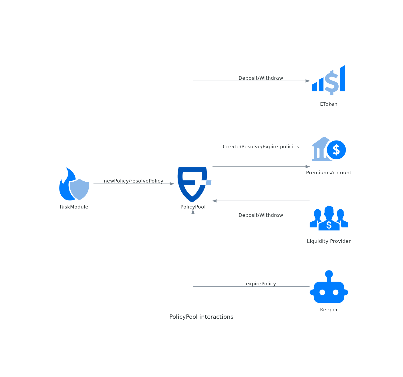 <figure><img src="https://188529526-files.gitbook.io/~/files/v0/b/gitbook-x-prod.appspot.com/o/spaces%2FpvASGnPdK0F6cKq9e2Lh%2Fuploads%2Fgit-blob-027ce97fe5f23b1def21d2e58051a68e01944ac0%2Fpolicypool_interactions.png?alt=media" alt=""><figcaption></figcaption></figure>